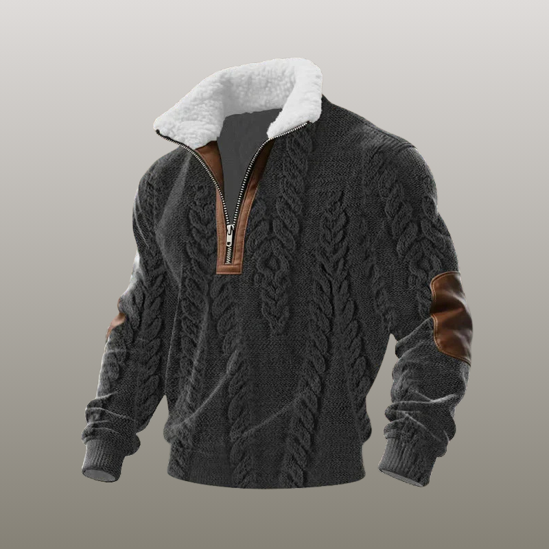 Florian | Zippet sweater med høj krave og pelskant